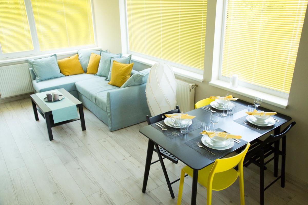 Apartament typu Studio z widokiem na ogród. Guests can make meals in the kitchen that is equipped with a stovetop, a refrigerator, a dishwasher and kitchenware. The spacious studio provides a private entrance, a tea and coffee maker, a terrace with lake views as well as a private bathroom featuring a shower. The unit offers 5 beds. Studio - 6 osobowy. Powierzchnia pokoju ok.: 55 mkw.